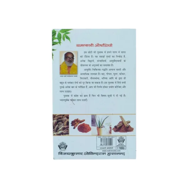 इस Chamatkari Aushadhiyan book में अश्वगन्धा, शतावरी, त्रिफला, नीम, तुलसी, हल्दी, ब्राह्मी जैसी अनेक चमत्कारी औषधियों के गुणों, उनके उपयोग की विधि एवं विभिन्न रोगों में उनकी उपयोगिता का विस्तृत विवरण दिया गया है। प्रत्येक औषधि के संस्कृत, हिन्दी एवं वैज्ञानिक नाम भी इस ग्रन्थ में उपलब्ध हैं।